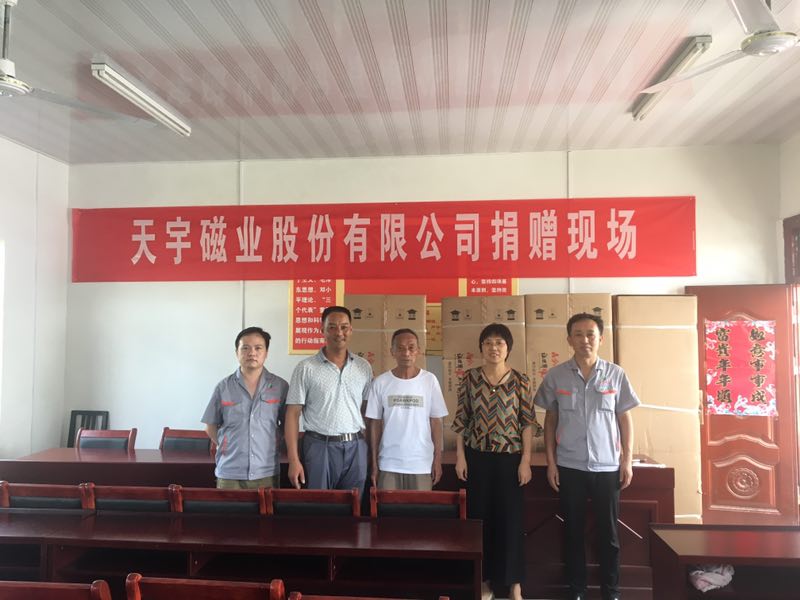 2017年7月10日,安徽天宇磁业股份有限公司到金牛镇铺岗村委会举行了简约而隆重的爱心捐赠仪式。金牛镇人民政府镇长陈为群、铺岗村党支部书记张玉良,安徽天宇磁业股份有限公司总顾问钱振刚、副总经理徐红强、徐静等出席了本次活动。