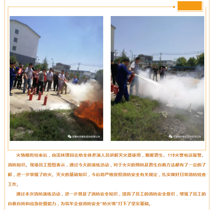 强化安全意识 天宇消防演练进行时